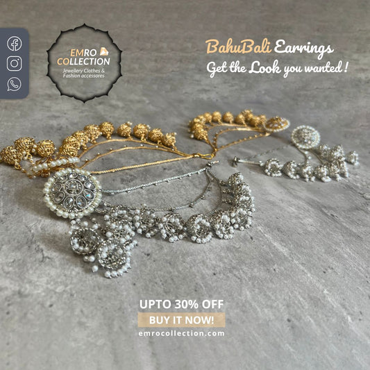 If you're a fan of jewelry and Bollywood, you should check out the Indian Bahubali earrings inspired by popular cinema trends! These earrings come in silver and gold colors and are of the highest quality. Our team has worked hard to make sure that every detail of these earrings is perfect. We're proud to say that they're a true masterpiece.Elevate your style with these stunning Earrings. Make a bold fashion statement and turn heads wherever you go. Shop our stunning collection today!