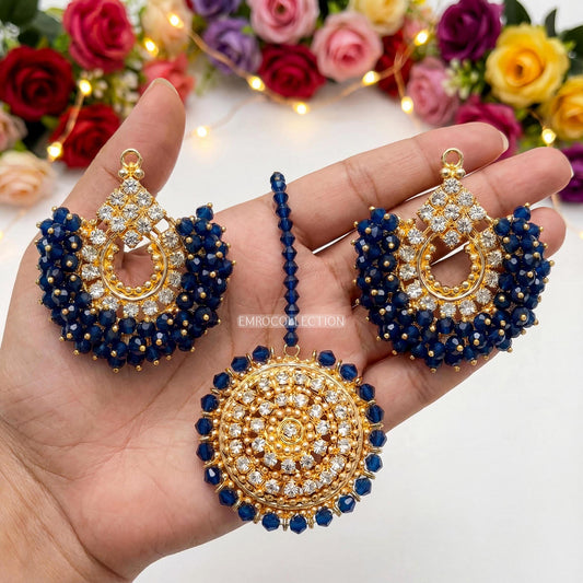 Regular price $14.99 USDRegular priceUnit price / perSale price $14.99 USDNavy Blue Chand Bali Earrings with Maang Tikka – Trending Pakistani Earrings Tikka Set