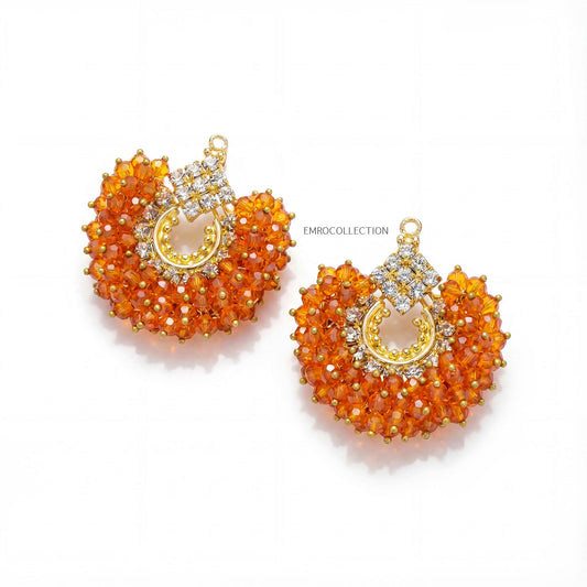Enhance your traditional look with this elegant Orange Chand Bali earrings with Maang Tikka set, inspired by classic Pakistani jewellery craftsmanship. Featuring vibrant orange crystal detailing with a refined gold-tone finish, this set adds a warm, festive, and radiant touch to any traditional outfit.